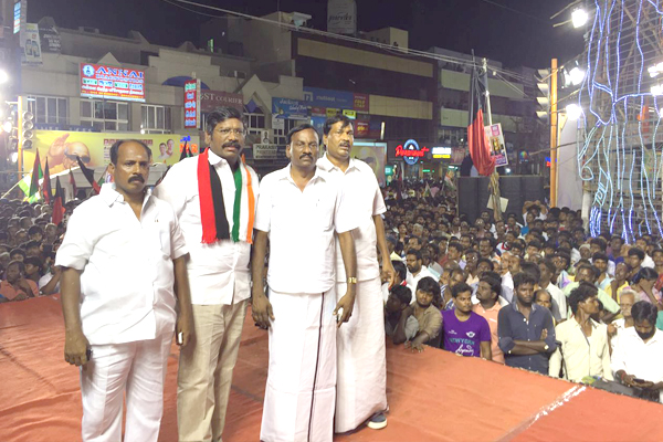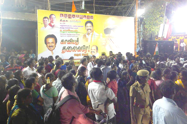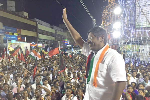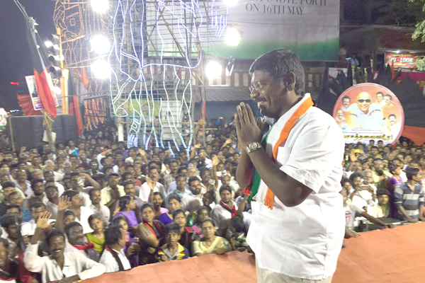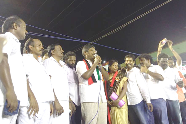 06/05/2016: DMK - Congress alliance Maduravoyal assembly constituency candidate R. Rajesh, during campaign in circle of Mogappair East Bus Stand