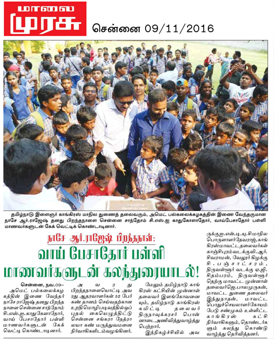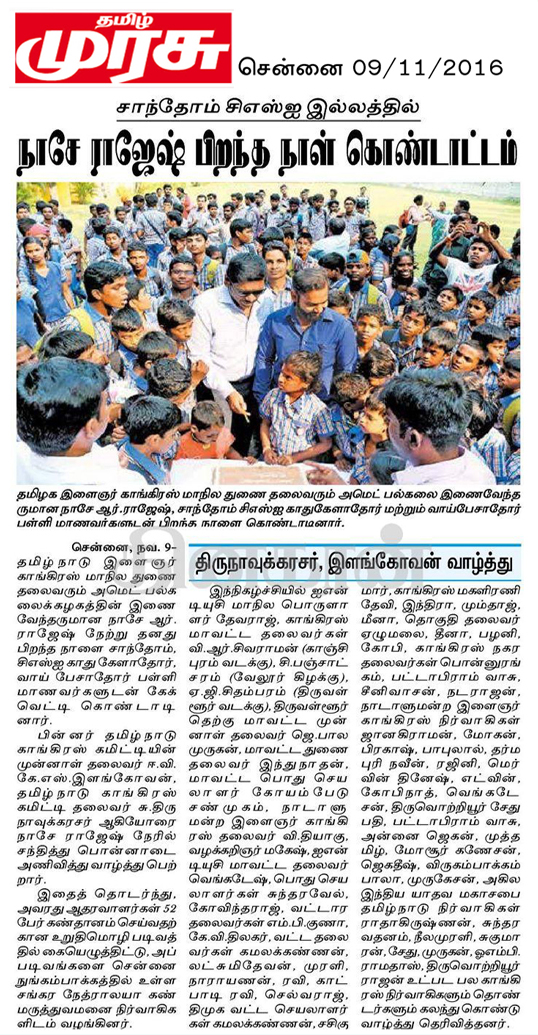 10/11/2016:NAESEY RAJESH Celebrating his Birthday along with Santhome CSI Hr.Sec School for Deaf's Special Children's at VGP Golden Beach.